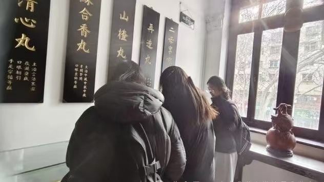 实践队围绕中医药文化传承主题,赴济南开展实地学习活动。在扁鹊文化纪念馆,队员们通过文物展陈与讲解,系统了解“望闻问切”四诊法的内涵;在宏济堂,通过参观中药炮制工艺展示区、与坐诊医师交流,近距离感受传统制药技艺与匠心精神;在山东中医药大学博物馆及多地新华书店,通过查阅中医药标本与《四季养生》《针灸大成》等典籍,进一步掌握中医养生理论知识。