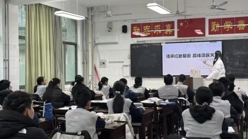 在调研基础上,团队走进师大附中初中部,面向2025级初一学生开展“传承红色基因 品味儒医文化——走进神奇的中药”主题双语宣讲。活动设置红医故事、儒医融合、中药科普、香囊DIY四个环节,以“中文+英文”双语形式呈现,将调研成果转化为生动课堂。