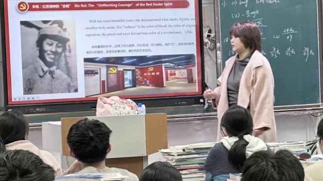 专业优势,开展中英双语主题宣讲。团队以刘惠民、辛锐两位医者的红色事迹为核心,配合老药铺、针灸诊疗等珍贵影像,生动讲述革命年代的医者以银针草药守护群众健康、用热血践行医者初心的故事,让现场学子沉浸式感受红医精神的力量。