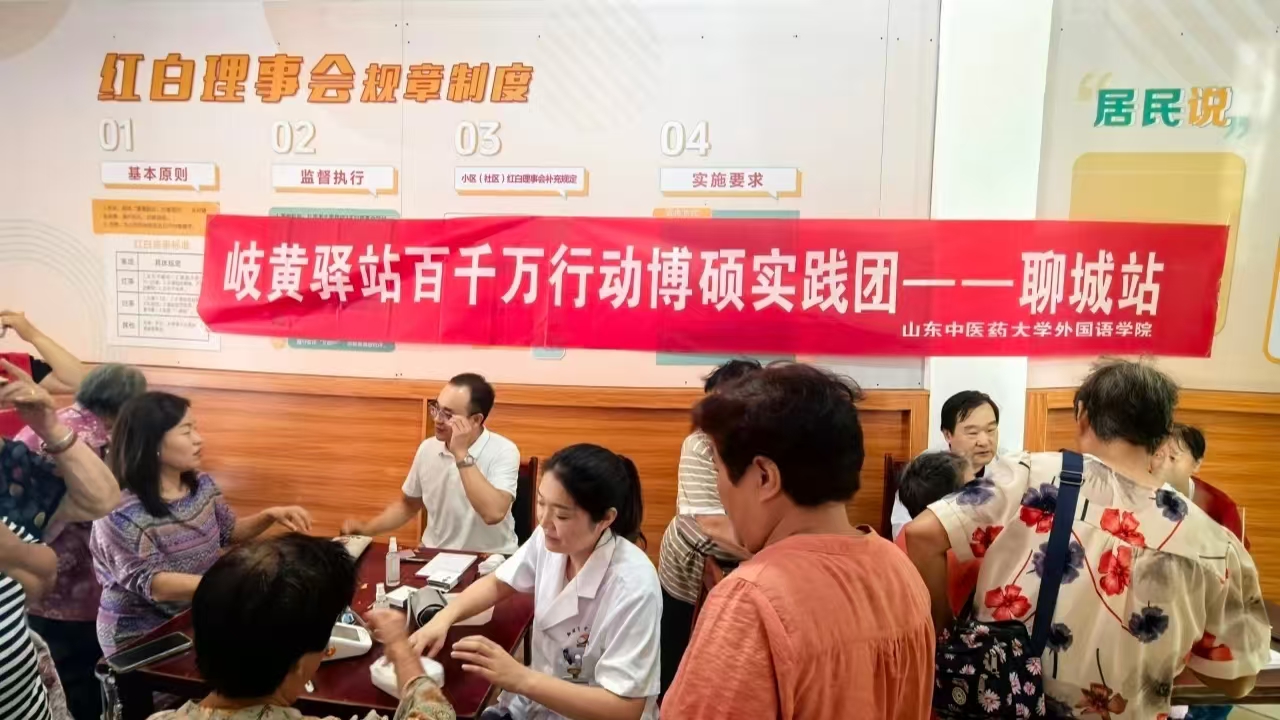 联合博硕实践团及聊城市中医院专家团队,赴聊城市东昌府区文慧社区,为百余位居民提供中医药健康义诊服务。