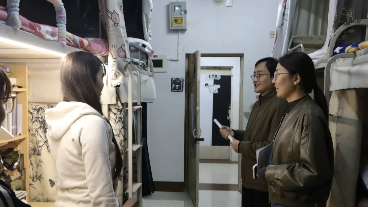宿舍是学生在校生活的重要场所,其安全状况与卫生环境直接关系到学生的健康成长和校园的整体稳定。检查过程中,重点排查了人走插排未断电、内务整理、宿舍卫生等情况,并就存在的问题现场进行指导。走访期间,田琪与同学们亲切交流,细致询问大家在学习、生活方面的适应情况,认真听取同学们在宿舍设施、服务保障等方面的意见与建议。通过面对面讲解,老师们进一步强调了遵守安全规范的重要性,引导学生将外在管理要求转化为内在自觉行动。