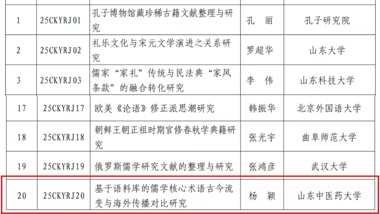杨颖副教授主持申报的“基于语料库的儒学核心术语古今流变与海外传播对比研究”获批立项。